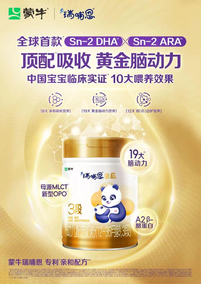而在创新的赛道上,蒙牛瑞哺恩也从未止步。其最新成果瑞哺恩亲益再破行业纪录!作为全球首款添加Sn-2DHA+Sn-2ARA的婴配粉,它不仅实现脑营养吸收效率的突破,更构建起8大8亲和吸收、19大9黄金脑动力、12大10核心自护的营养矩阵。据悉,瑞哺恩亲益3.0新品将于今年内上市,持续为行业注入创新动能。